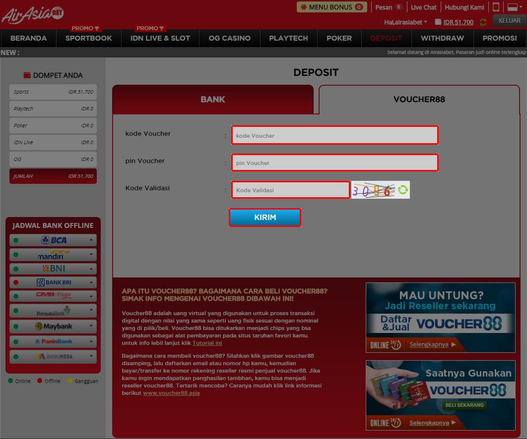 Cara Melakukan Voucher88 Deposit airasiabet