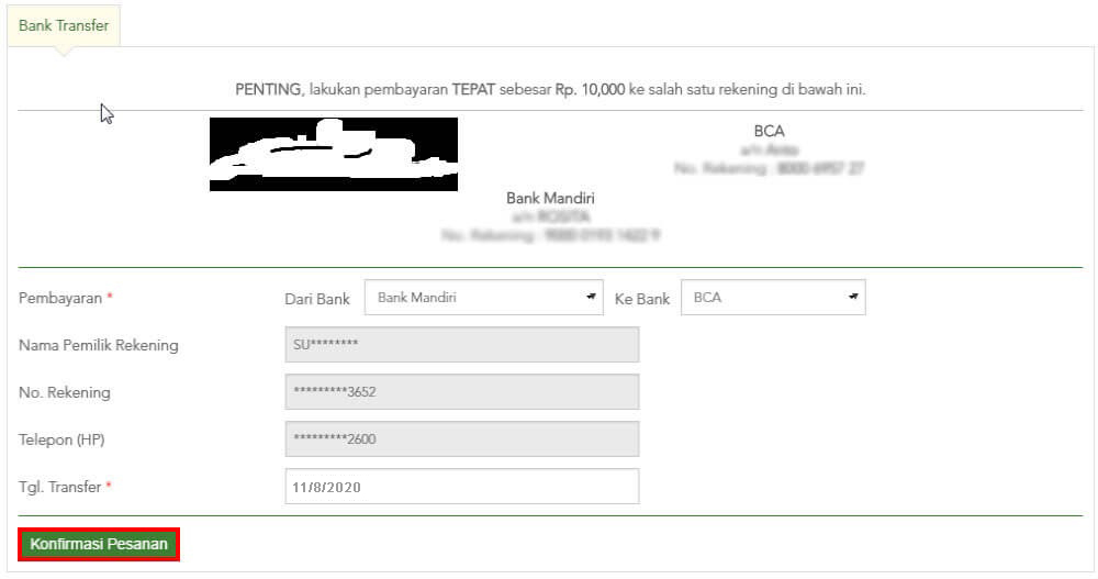 Lalu klik KONFIRMASI PESANAN.